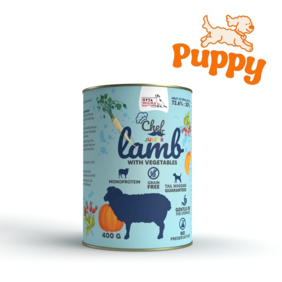 Syta Micha CHEF JUNIOR - Mokra karma Jagnięcina z warzywami dla szczeniąt 400g