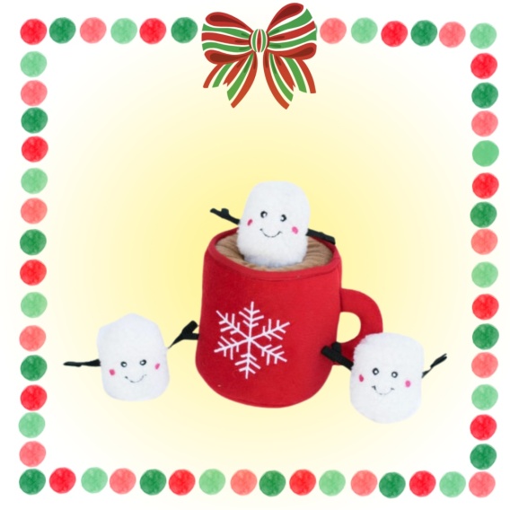 Świąteczna norka od amerykańskiej marki ZippyPaws! Pluszowy kubek kakao z trzema uroczymi piankami Marshmallow! Schowaj zabawki do pluszowej norki i obserwuj jak Twój pies trudzi się by wydobyć je używając nosa, łap i zębów! Idealny prezent pod choinkę dla psów ras małych i średnich.